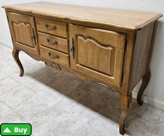 Notable Feature: Ornate moldings, curved legs, and antique-inspired hardware.