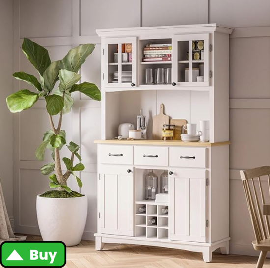 Pairs best with: Traditional, farmhouse, or even coastal homes. Ideal for kitchens or dining rooms that need both style and serious storage.