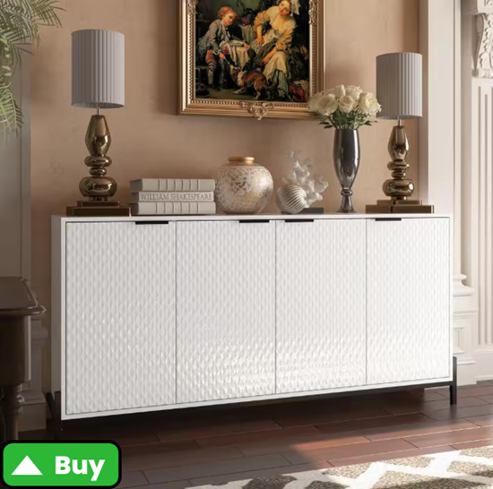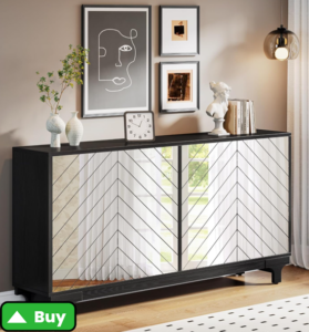 This is the glam choice. Mirrored sideboards feel luxurious and make a big impact, especially in rooms with low light. Some designs even come with crystal knobs or metallic trim.