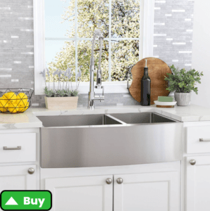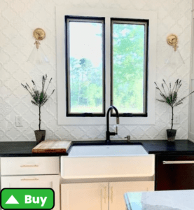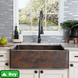When it comes to countertops, butcher block or marble are ideal choices for a shabby chic kitchen. Butcher block offers warmth and a rustic feel, while marble brings a touch of elegance with its natural veining and soft colors. Both materials age beautifully and add to the lived-in, well-loved aesthetic that shabby chic embodies. To complete the look, pair your countertops with a vintage-style apron farmhouse sink, perhaps in a steel or antique brass finish.