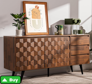 Bme Sideboard Georgina Solid Wood 2 Doors & 3 Drawers, 61 inch Mid Century Modern Cabinet with Geometric Pattern – amazon.com