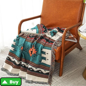 Textiles are a must in Southwestern design. Think blankets, rugs, and throw pillows adorned with geometric patterns, tribal motifs, and traditional Native American designs. A large, flat-woven Kilim or Navajo rug can anchor the room, bringing in vibrant colors and a sense of craftsmanship. For added coziness, drape a handwoven blanket over the armchair and mix and match pillows with bold prints, tassels, or embroidery. These elements should feel eclectic but curated, adding depth and richness to the space.