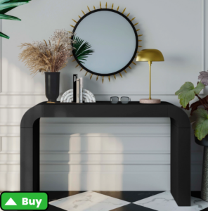 - Why It Works: A curved console table is perfect for breaking up a room’s monotony of sharp angles. It adds a sense of flow and softness, especially in tighter spaces like hallways. Opt for materials like gold-finished metal or marble tops for an elevated look.