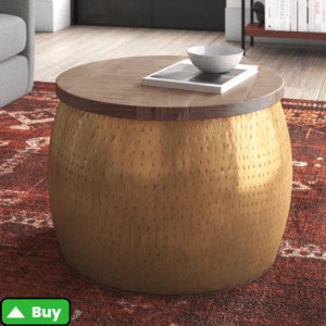 18.5 H x 27.5 L x 27.5 W Henton Hammered Metal Drum Coffee Table with Storage and Wooden Top – wayfair.com