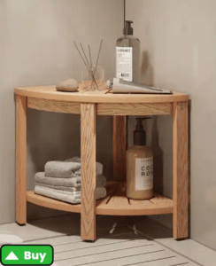 Lumber Shower Bench 18 inch Shower Stool Corner Bench with Storage Shelf Shower Seat – Brown – bedbathandbeyond.com