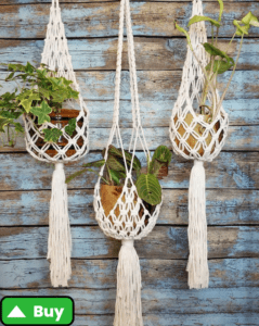 Macrame plant hanger-Simple Boho wall decor indoor plant holder – black or natural white plant stand hanging wall planter – etsy.com