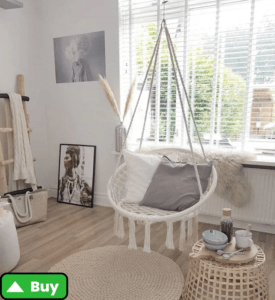 Boho-inspired rugs add depth and visual interest. Consider a cozy reading nook with a hammock chair or a comfortable armchair.