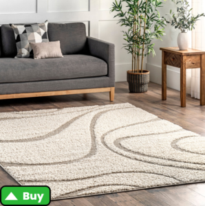 The epitome of cozy comfort, shag rugs have a thick, plush pile that’s just begging you to sink your feet into. These rugs are available in a range of materials, from durable synthetic fibers to plush, high-quality wool, making them ideal for spaces where you want to establish a cozy and welcoming atmosphere. Just be mindful—they can be a bit of a pain to clean if you have pets or small kids.