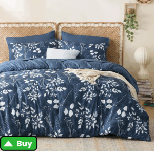 For instance, a floral duvet with navy accents can pair beautifully with a smaller-scale striped pillow in the same navy. Or you could ground a patterned rug beneath a solid-color bedspread, then add a patterned throw at the end of the bed for depth.