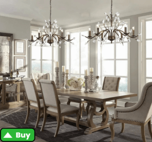 No French Country interior design is complete without the dazzling allure of crystal chandeliers. These exquisite lighting fixtures effortlessly blend elegance with rustic charm, casting a warm and romantic glow throughout the space. Whether it’s a grand chandelier in the living room or dining room, crystal chandeliers are an authentic statement piece that adds luxury and sophistication to any French Country-inspired room.