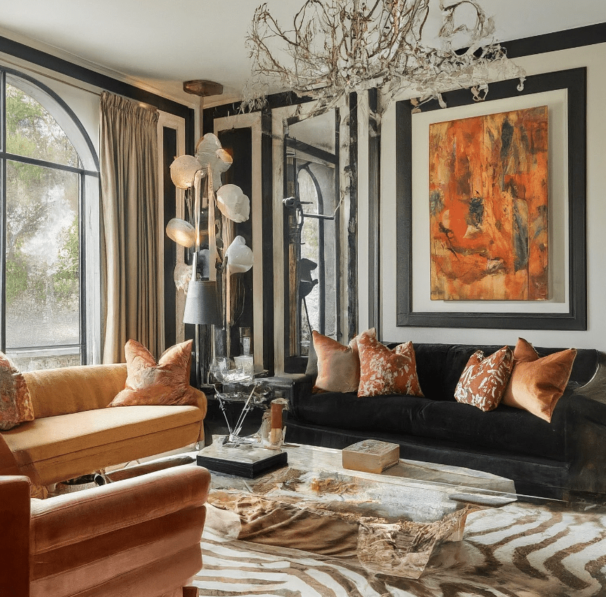 One of the most iconic color schemes associated with Hollywood Regency is black and white. This classic duo instantly elevates any space, creating a timeless and sophisticated look. Add pops of color with bold accessories or artwork for a fun and modern twist.