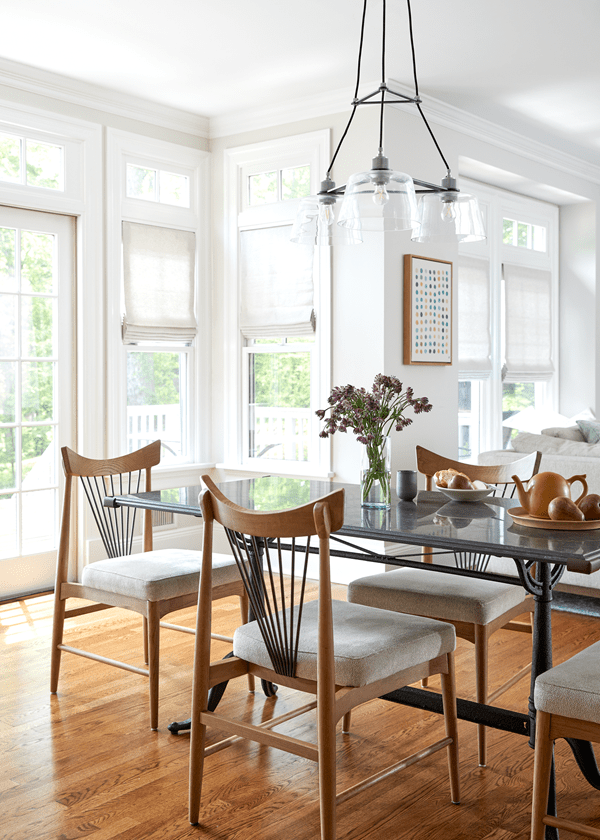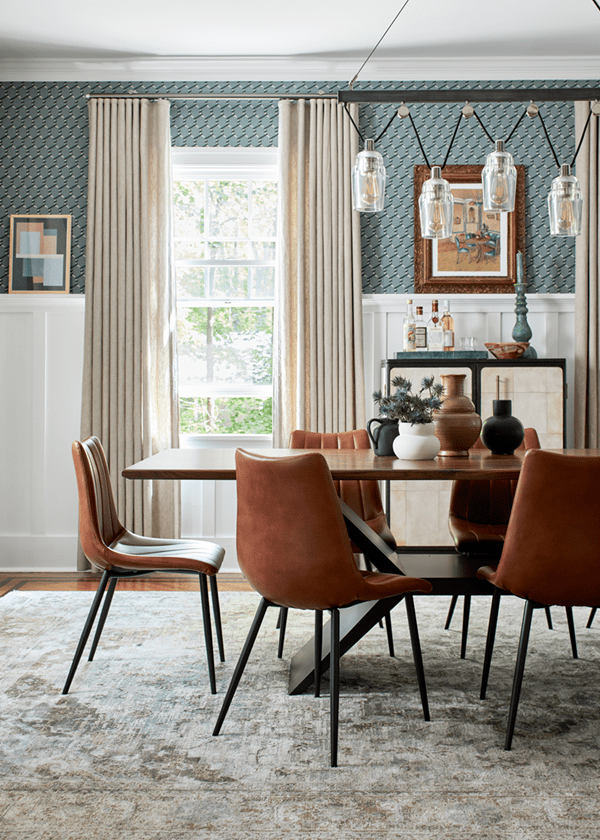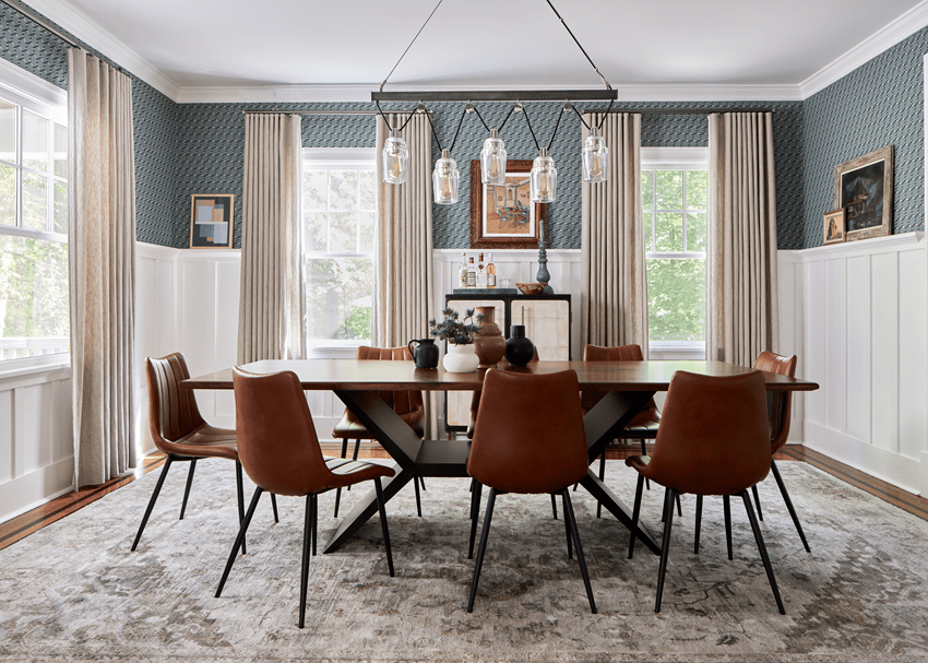 Understanding their desire to transform their new house into a warm and inviting home, the design approach integrates contemporary elements with cozy and casual touches to create a functional living space. Beginning with the dining room, the goal was to foster an atmosphere conducive to both intimate family dinners and entertaining guests.