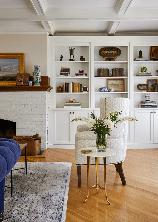 By adding custom built-in millwork next to the fireplace, it helped to anchor the space and enhance the fireplace wall.