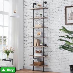 HOMBAZAAR Industrial Bookshelf, 7-Tier Industrial Pipe Bookshelf, Wall Mounted Ladder Shelves with Metal Frame for Home Office, Living Room, Oak Brown – amazon.com
