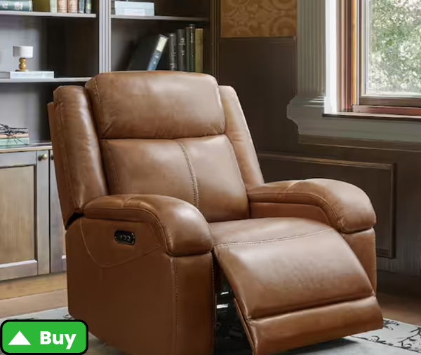 Auberon Saddle Brown Genuine Leather Wall Hugger RV Power Recliner Chair with Adjustable Headrest and Charging Port – homedepot.com