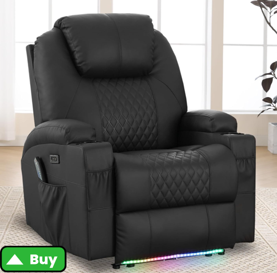 For those who want to take relaxation to the next level, a power recliner with massage and heat is a game-changer. These chairs often come with remote controls that allow you to adjust everything from recline angle to massage intensity. Choose a sleek, streamlined design in a premium fabric like velvet or top-grain leather to keep it looking chic.