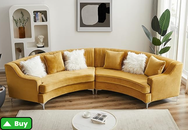 - Curved sectionals make a dramatic statement with their flowing lines and elegant look. They’re ideal for larger rooms and design-forward interiors.