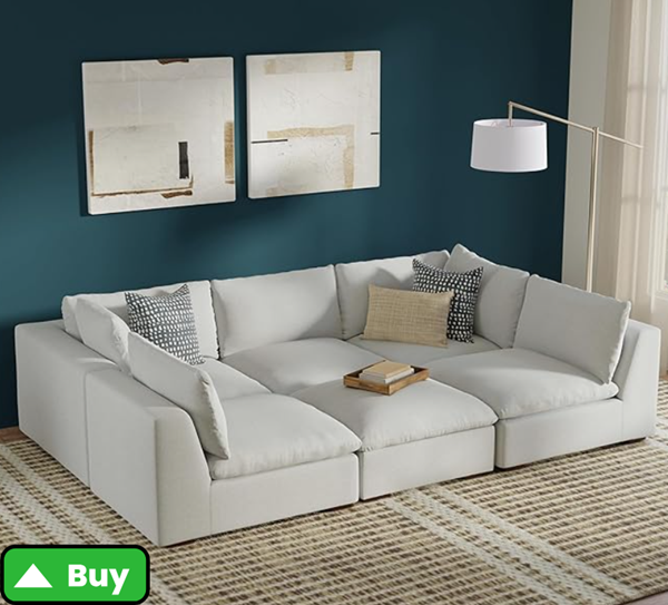 Imagine a giant square made of cushions—you’ve got the idea. A pit sectional is all about serious lounging—it’s plush and cozy and great for movie nights or Sunday naps. Some are true “pit” styles with no hardback frame, while others have low-profile backs and chunky arms. Either way, this one screams comfort.