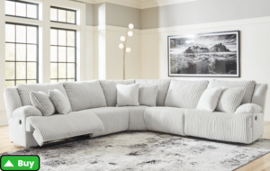 Want your living room to double as a home theater? A reclining sectional is the ultimate in cozy comfort. Some come with power recliners, cupholders, storage consoles, and even USB charging ports. If it’s not a wall-hugging design, just make sure you have enough clearance space behind it.