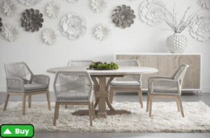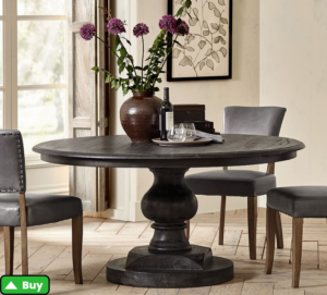 Modern farmhouse round dining tables strike the perfect balance between rustic character and contemporary flair. Clean lines, sleek finishes, and thoughtfully designed details infuse a modern touch to the traditional farmhouse aesthetic. The result is a statement piece that effortlessly anchors your dining area.