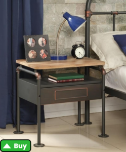 For an authentic industrial look, nightstands made from metal pipes and wood offer an edgy, utilitarian vibe. These nightstands typically feature a wooden top and open metal shelving, creating a raw, unfinished look that fits well in modern lofts or urban spaces.