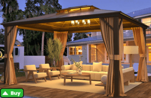 - On the other hand, a gazebo has a solid roof and provides complete shade and protection from the elements. It offers a cozier, intimate atmosphere and is an excellent option for those who want a more traditional or romantic setting.