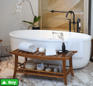 • Consider the available space, your functional needs, and the existing décor of your bathroom. For smaller bathrooms, opt for a minimalist or folding shower bench. For added storage, choose a storage bench. If you’re looking to enhance the aesthetics, an accent or rustic wooden bench might be ideal. Measure your space to ensure a proper fit.