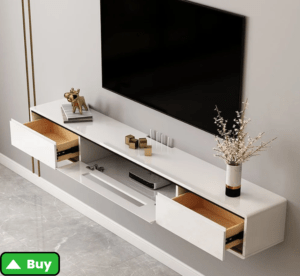 Floating Media Console Shelves: Shelves with built-in drawers for hidden storage