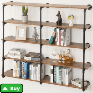 Pipe and Wood Floating Shelves: Industrial style using metal pipes and wood planks.