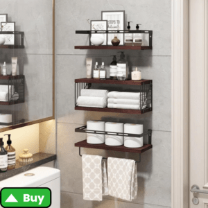 Floating shelves in the bathroom can combine functionality and aesthetics. Use them to store decorative items, toiletries, and towels. Pick materials that can withstand humidity, like tempered glass or sealed wood. Shelves with metal brackets can add an industrial touch, while all-wood shelves can offer warmth. Arrange your shelves to keep the most-used items within easy reach. Add baskets or boxes to conceal less attractive necessities. Display rolled towels, scented candles, and a few decorative pieces to create a spa-like atmosphere.
