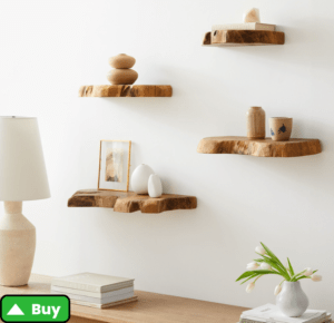 Live Edge Floating Shelves: Natural wood edge for a rustic, organic feel.